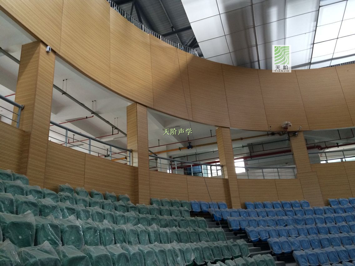 此項目采用的材料有:B1級防火吸音板8000方,飾面帶來了視覺上的美感,吸音板在聲學(xué)方面提倡了很好的聲學(xué)環(huán)境。