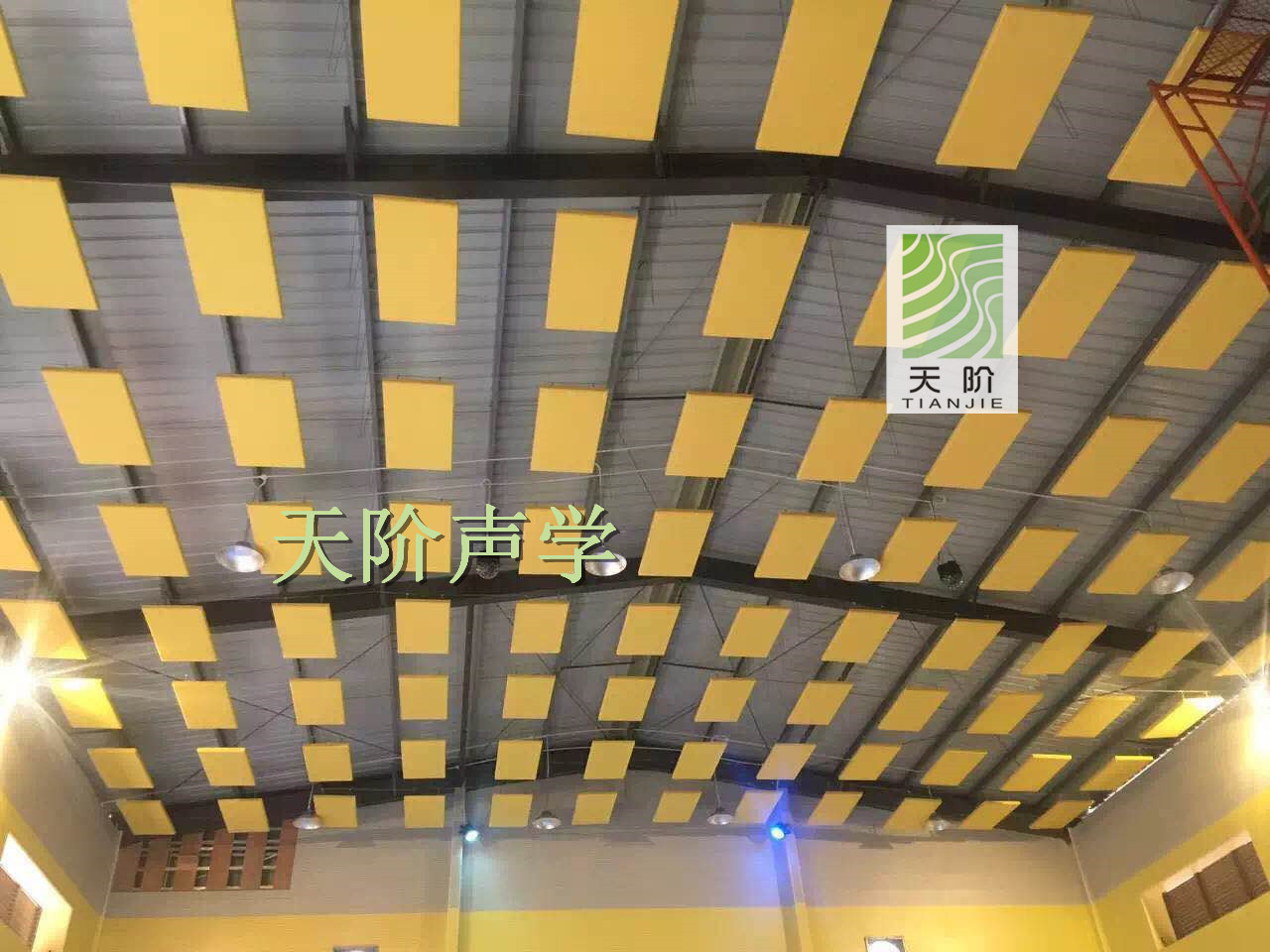 常德南源實驗學校需要建一所室內體育館。學校特地邀請了專業的聲學設計師進行設計,選用了平板空間吸聲體。空間吸聲體是一種懸掛在頂棚具有高效吸收性能的吸聲材料。空間吸聲體一般水平或者垂直吊掛。
