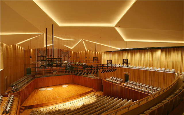 例如,在打開窗戶的那一面,由于完全不反射它所碰到的聲音能源,因而吸音率為100%,亦即該面為完全吸音面,但同時(shí)也可能有完全無法隔音的面存在。室內(nèi)之吸音程度大時(shí),即能壓制室內(nèi)的擴(kuò)散音并降低噪音水平。此方法系遠(yuǎn)離噪音源和影響點(diǎn)時(shí)會(huì)有效果,但若室內(nèi)各處都有噪音源且和影響點(diǎn)之距離相近時(shí),例如窗邊的座位對(duì)由窗戶入侵的聲音,因?yàn)樵胍舻闹苯佑绊懱螅识浣逵晌羲a(chǎn)生的隔音效果不會(huì)太顯著。音樂廳聲學(xué)設(shè)計(jì)的指標(biāo)**的具有高雅文化氛圍的專業(yè)性音樂廳可供自然聲演出,并適應(yīng)多種風(fēng)格的音樂作品演出。