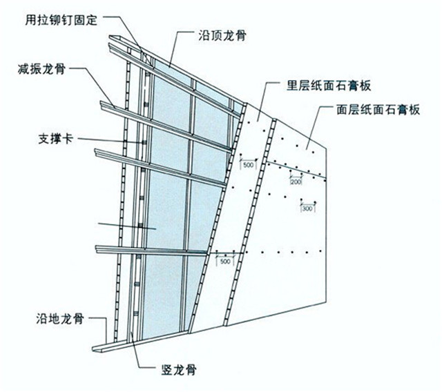 2. 墻壁處理:  隔音材質:隔聲毯、厚窗簾、吸音棉、壁紙  只是通過吸音棉和石膏板做一層隔墻,效果不好。因為這還是用吸音來代替隔音,好的吸音不隔音,好的隔音不吸音。在基礎墻面上,最最好讓墻面有些凹凸,增加聲音反射面,弱化聲區,使用隔聲毯的隔音達到了20dB,這種材料具有非常好的寬頻隔聲特性和高阻尼性,可以有效隔絕各類空氣傳聲,用它與石膏板、吸音棉組合而成的隔聲墻的隔聲效果就非常好。  不要以為釘木板可以吸音,木板表面是平的,與原來的墻無異。木板本身很硬,也與墻無異,它不會有好的吸音的作用。