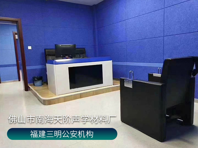福建三明公安局項目,審訊室選用實用又實惠的聚酯纖維吸音板,空隙吸音降噪,有彈力能卸掉大部分撞擊力,做不燃處理,安全安心。