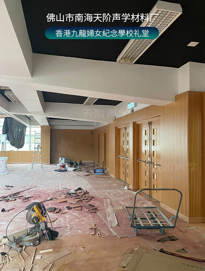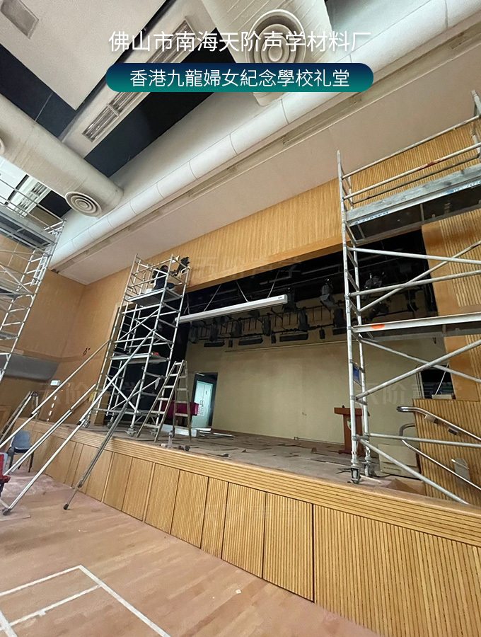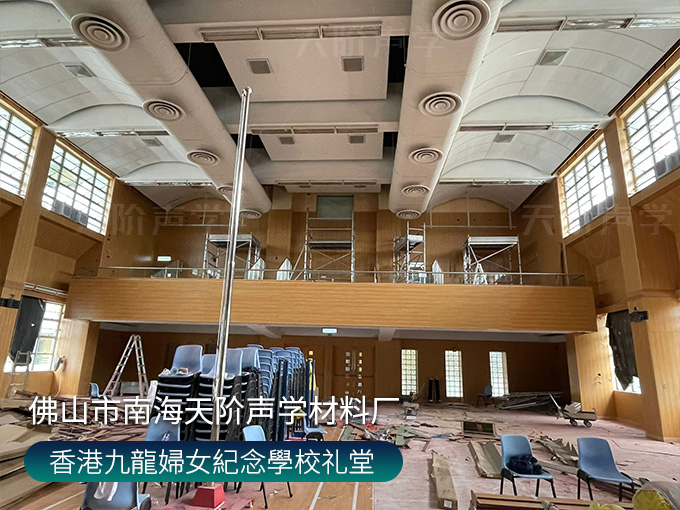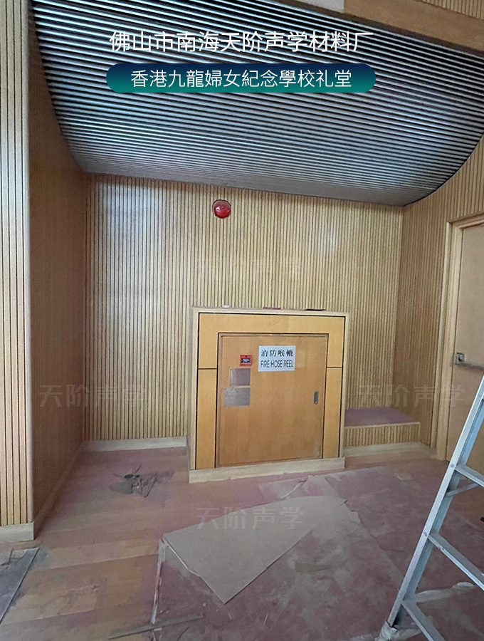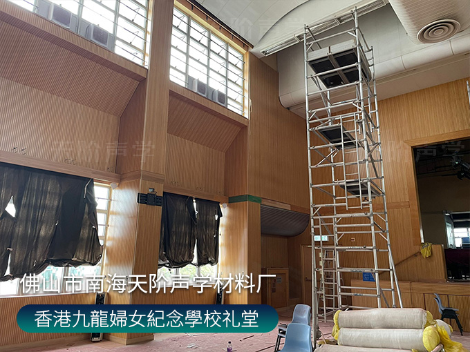 香港九龍婦女紀(jì)念學(xué)校禮堂,墻面安裝木質(zhì)吸音板