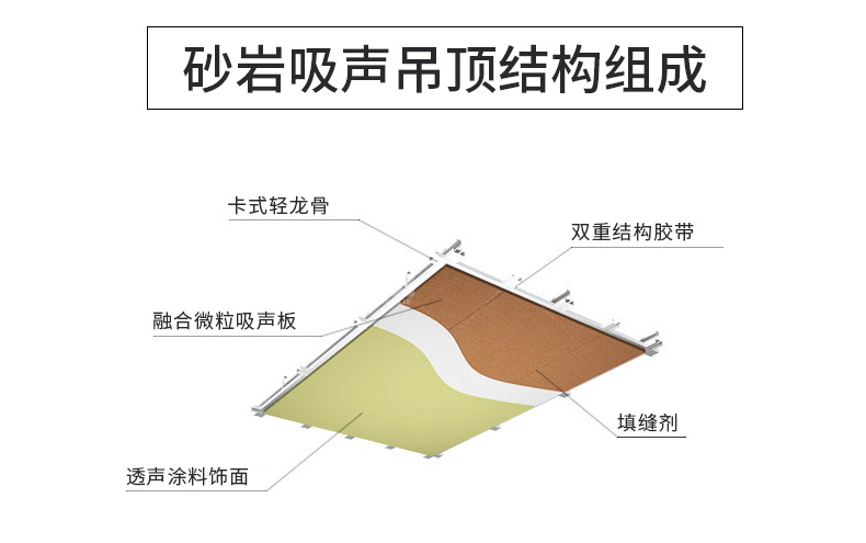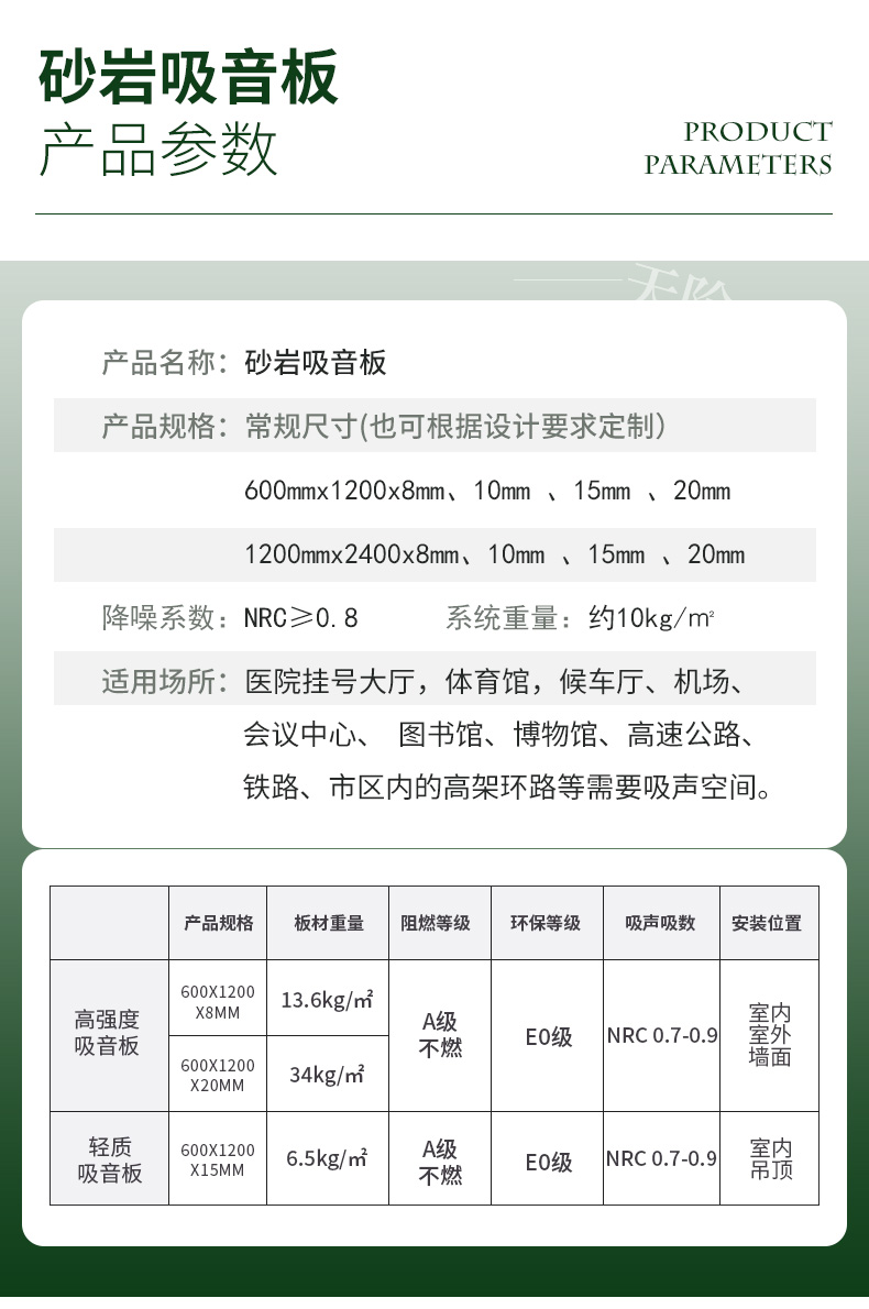 砂巖吸音板,它的基材有兩種,一種是具有吸聲防火**的強(qiáng)化玻纖板為基材,這種基材為大家所熟知,也是很多設(shè)計(jì)師慣用的一種高端吸聲材料;另外一種基材是由特定直徑的輕質(zhì)砂粒為原料,通過聚合技術(shù)使每個(gè)顆粒之間如焊接般聚合在一起,由于無機(jī)顆粒的表面不規(guī)則形狀或聚合空隙,微粒之間形成了大量不規(guī)則且互相連通的微觀孔隙結(jié)構(gòu)。