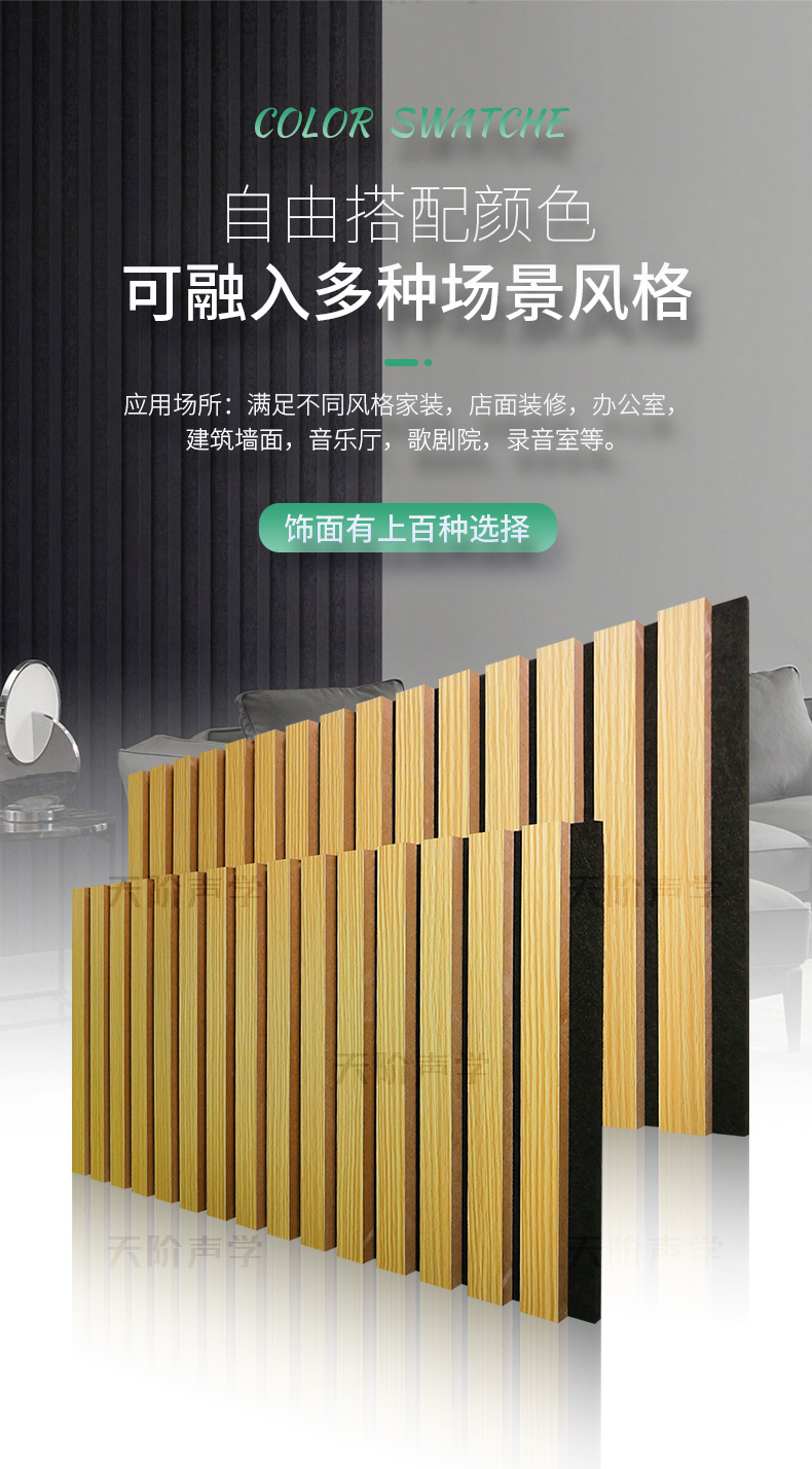 適用于多種場所:多種飾面,滿足不同風(fēng)格家裝,店面裝修,辦公室,建筑墻面,廣告牌制作,音樂廳,歌劇院,錄音室等(內(nèi)外墻,室內(nèi)天花)。
