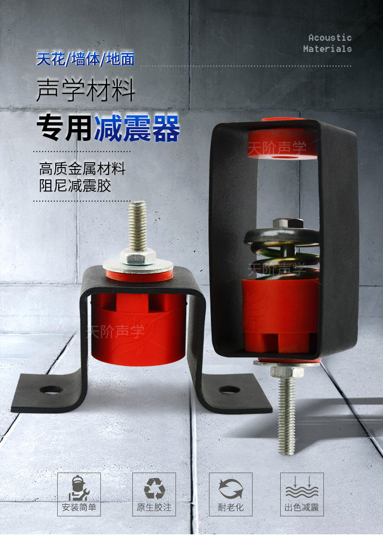 天花墻體隔音減震器是用于天花墻體隔音的必要構(gòu)件。它特有的阻尼橡膠塊可以切斷聲橋的傳播,尤其對(duì)KTV、酒吧里有低音炮的地方,這是重要的隔音系統(tǒng)配件,不然,無論多少隔材料都無法將聲音阻隔于包廂房?jī)?nèi)。