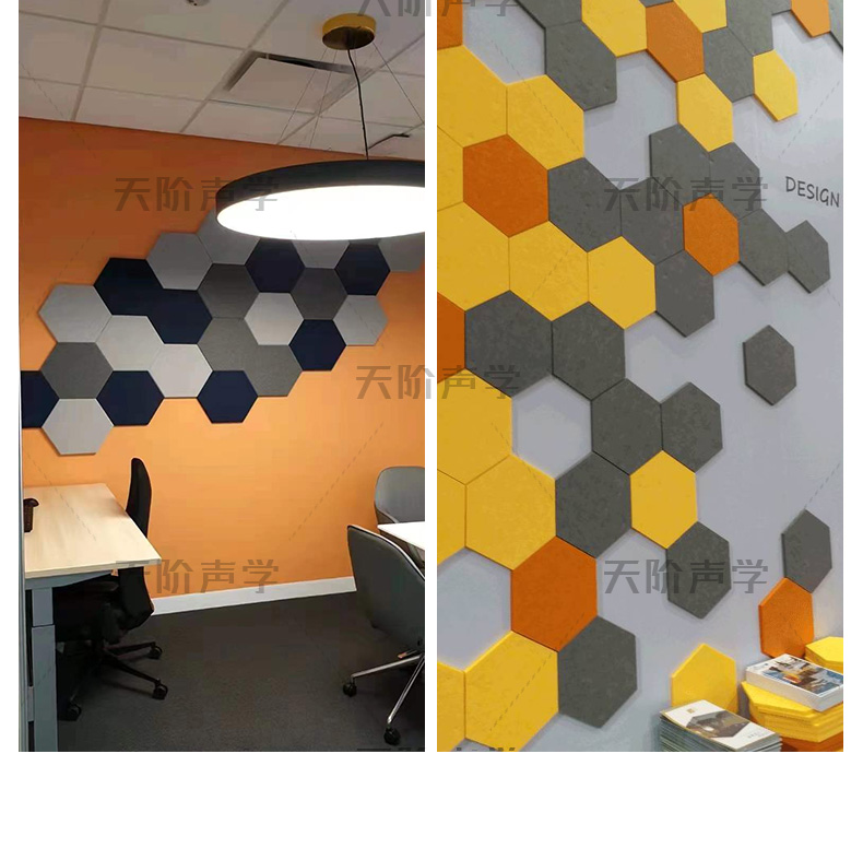 您現(xiàn)在的位置首頁 ? 槽木木質(zhì)吸音板 - 軟包 - 防火吸音板 - 聲學產(chǎn)品 ? 聚酯纖維吸音板會議室六邊形聚酯纖維吸音板